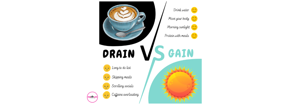 🔎 First, audit your energy. Like your finances, track where it’s going for a day. What drains you? What boosts you?